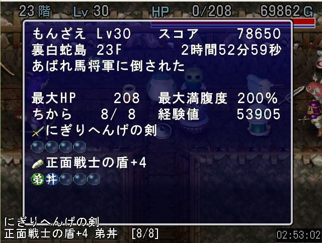 ボクも世界を救いたいを黙々とプレイ中。時々アスカ。 どちらも画像はありません。 ある程度育てた後ちょっと間違えると即GAMEOVERなこのゲーム。 終盤でコロッと死ぬとかなりピキピキ来ます。 アスカも最近はまったく深層(終盤)にたどり着けない・・・。 10~20F台をずーっと繰り返してる気がします。 面白いのは50Fくらいからなんだけどなぁ。