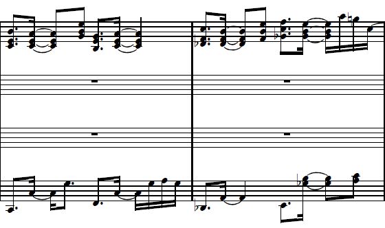 きのうは左 きょうは右 ゲームやらなんやらで現実逃避してる間に明日は学校です。 一応慣れてきてるというかうまく目を背けることができているので 精神的な圧迫感は受けていません。 このまま惰性で通い続けることが重要だと思います。 ピアノ。 相変わらず右手は複雑ですが、弾いてしまえば案外簡単だったりしました。 この部分はかなり綺麗なので弾いてても楽しいです。 この和音の連続は難しくないと分かったのですが、 問題はもう一つ別の難しさのある小節が先にちらほら…。 それはそうと、そろそろ楽譜1枚目終了です。 学校行った日は多分ダルくてやりそうにないので 先がいつになるか…。 Super Street Fighter Ⅳ発売までは完成させたいけれど…。
